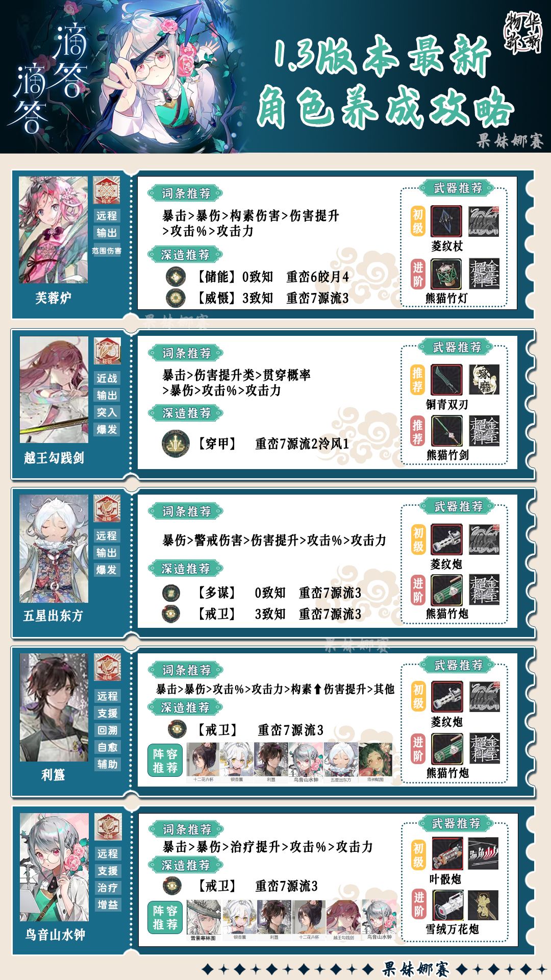 物华弥新1.5最新人物武器加点推荐一图流