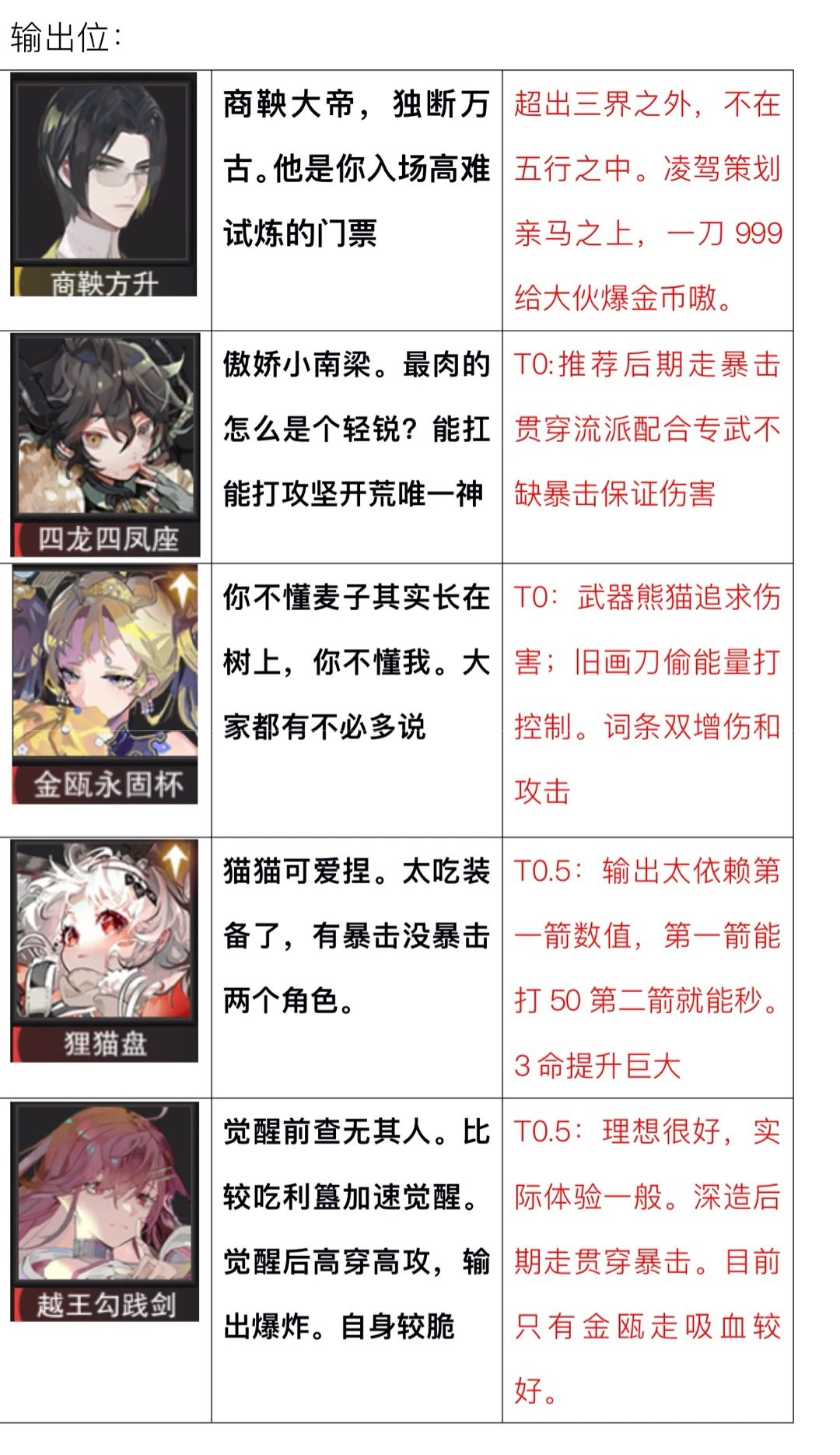 以上都是有考虑他单人以及队伍里面的整体强度来排序的 (如果对以下角色有任何的疑问可以在评论区交流)#物华弥新 #物华弥新创作者激励计划 #物华弥新攻略