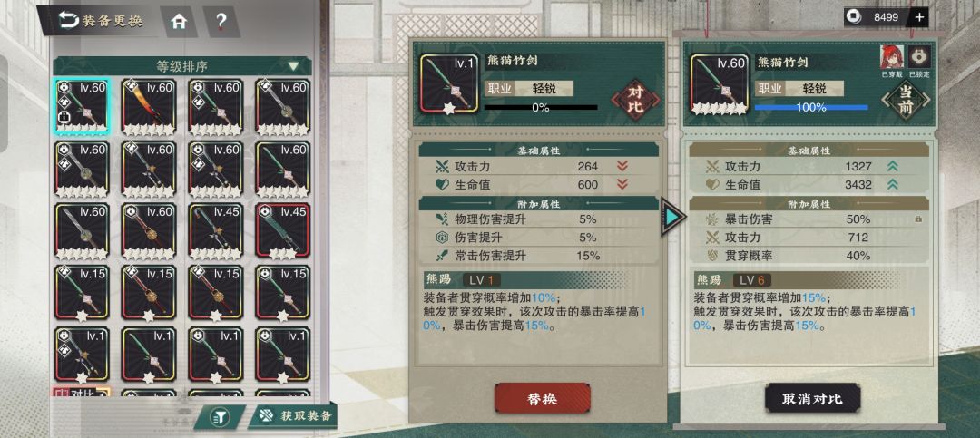 首先科普一下最难理解的攻击力问题,这个游戏分局外攻击力和局内攻击力。 局外攻击力=英雄基础攻击力×局外百分比加成+局外固定攻击力 局内攻击力=局外攻击力×局内百分比加成+局内固定攻击力 (武器词条是局外增益,啸剑buff是局内百分比,编钟是局内固定攻击力) 下面是测试所用武器和角色面板 越王觉醒后爆伤=基础150+深造30+深造触发贯穿40+熊猫剑15+贯穿概率转化60+15+60-40=330 下