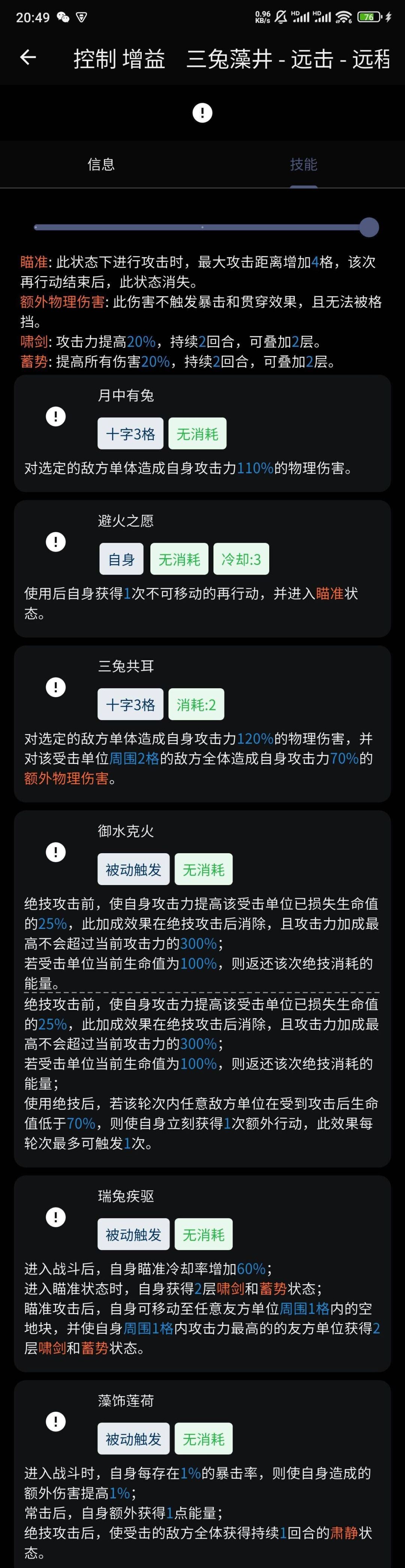 三兔技能组出了,大体上与小道消息没有偏差。 按照惯例,先是省流一下机制: 1.三兔藻井的大招是一个【直接伤害】+【额外伤害】组成的单体直伤,群攻额伤的技能,武器首选松木弩。 2.当三兔藻井大招攻击满血敌人时,返还消耗能量。 (【三致知】效果:本轮次内有敌方被打掉30%以上的血量时,三兔藻井获得一次额外行动,每轮限一次。) 3.三兔藻井自带60%冷缩,并且瞄准攻击后拥有利簋同款传送,能够传送到任何一