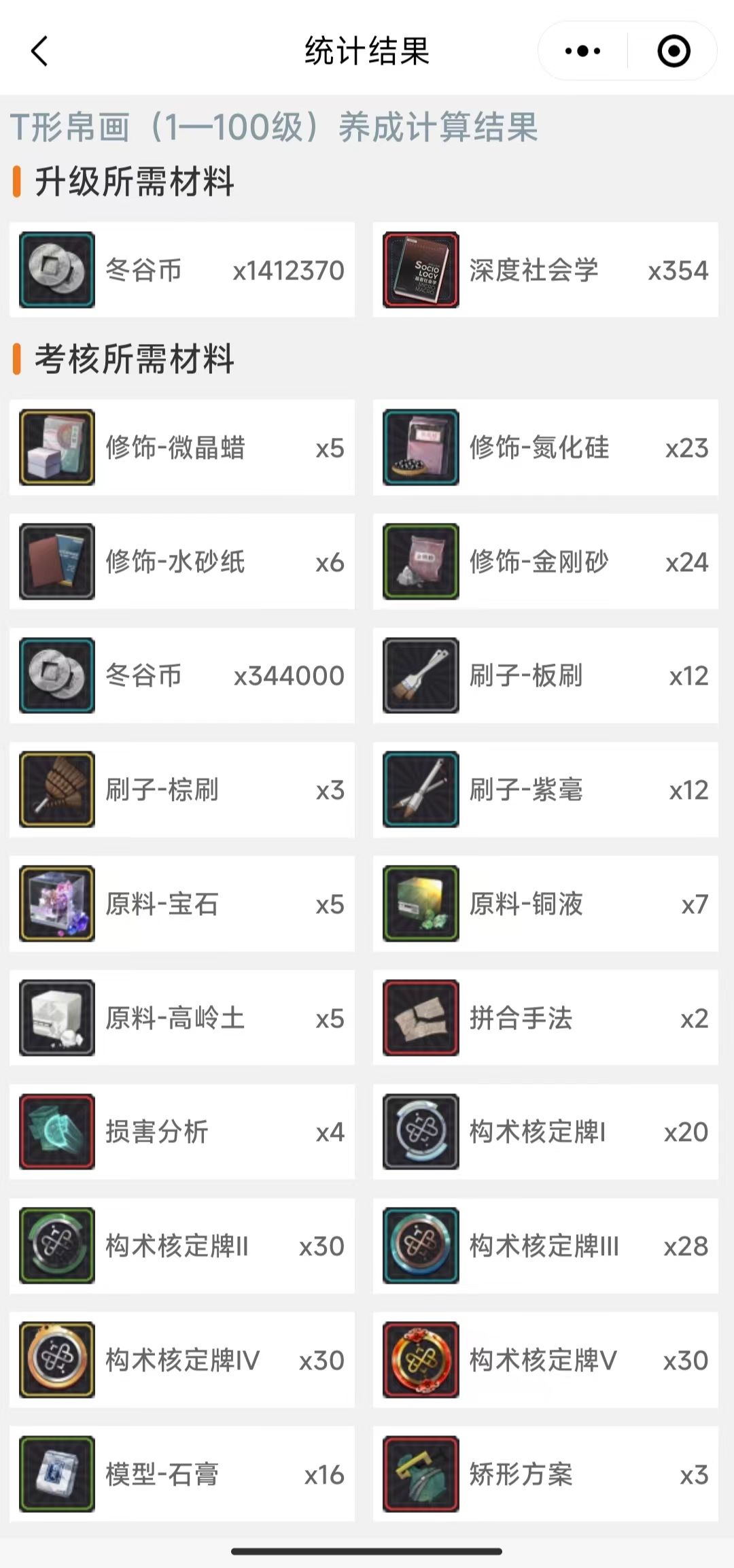 最近几周,常用的器者已经材料拉满升到100级了,毕业了几把武器。周末挂东谷竞赛期间,想着无聊,收集了一下数据,做了一些功能,补充到物华小助手小程序中,提供给大家辅助使用,微信 搜索【物华小助手】打开可用。 功能预览 一.器者图鉴 1.1 器者详情 查询器者基本信息和技能详情描述,致知信息,馆藏地点信息等等。 1.2 养成计算器 器者养成计算器可以选择器者,指定目标等级和强化选项。计算器者升级和考核