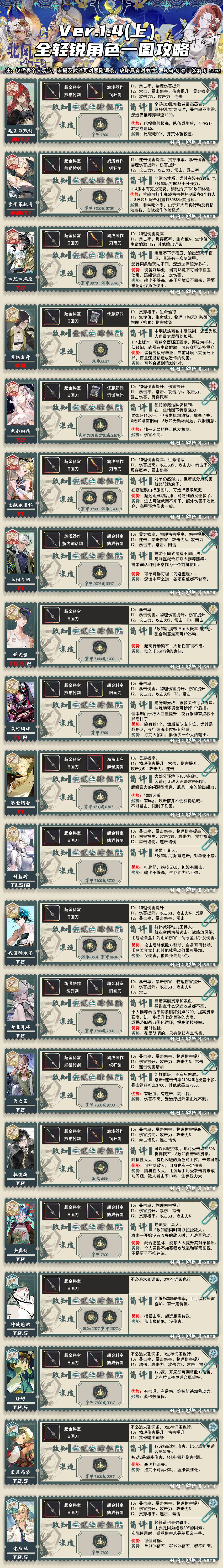 1.4上 全角色养成一图攻略「物华弥新」