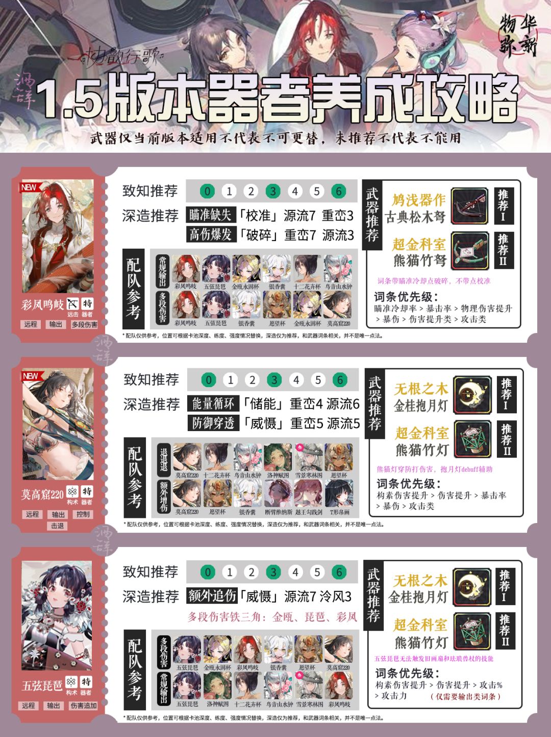 1.5版本出了新的「无根之木」系列武器 武器和配队都会有一定调整 —————————— 已经更新完毕了 💡攻略内容不一定完全正确 器者养成和配队和器者练度强度有关系 深造和配队仅代表我个人想法,仅供参考 #物华弥新 #物华弥新创作者激励计划 #物华弥新攻略征集 #物华弥新创作者 #物华弥新小日常 #物华弥新攻略