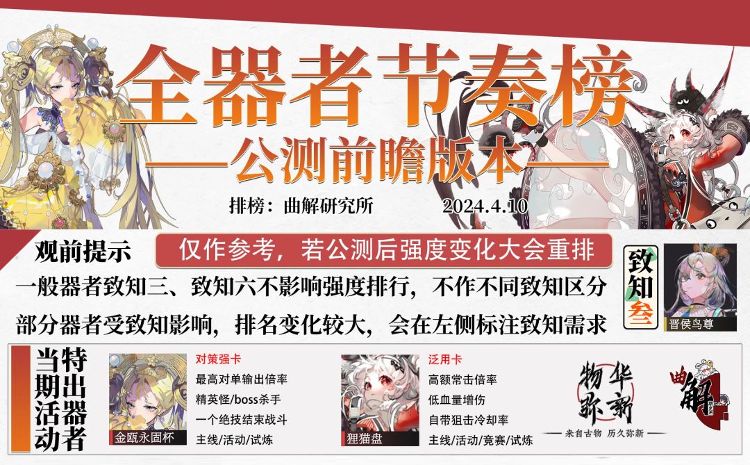【曲解研究所】出品 物华弥新全器者节奏榜——公测前瞻版本 强度榜排名具有时效性,本强度榜仅为公测前瞻,请以公测正式版本为准! 更新版指路→【物华弥新】公测器者强度榜 - TapTap https://www.taptap.cn/moment/530338563603040028?share_id=2b1d4660f9b6&utm_medium=share&utm_source=copylink#游戏种草计划