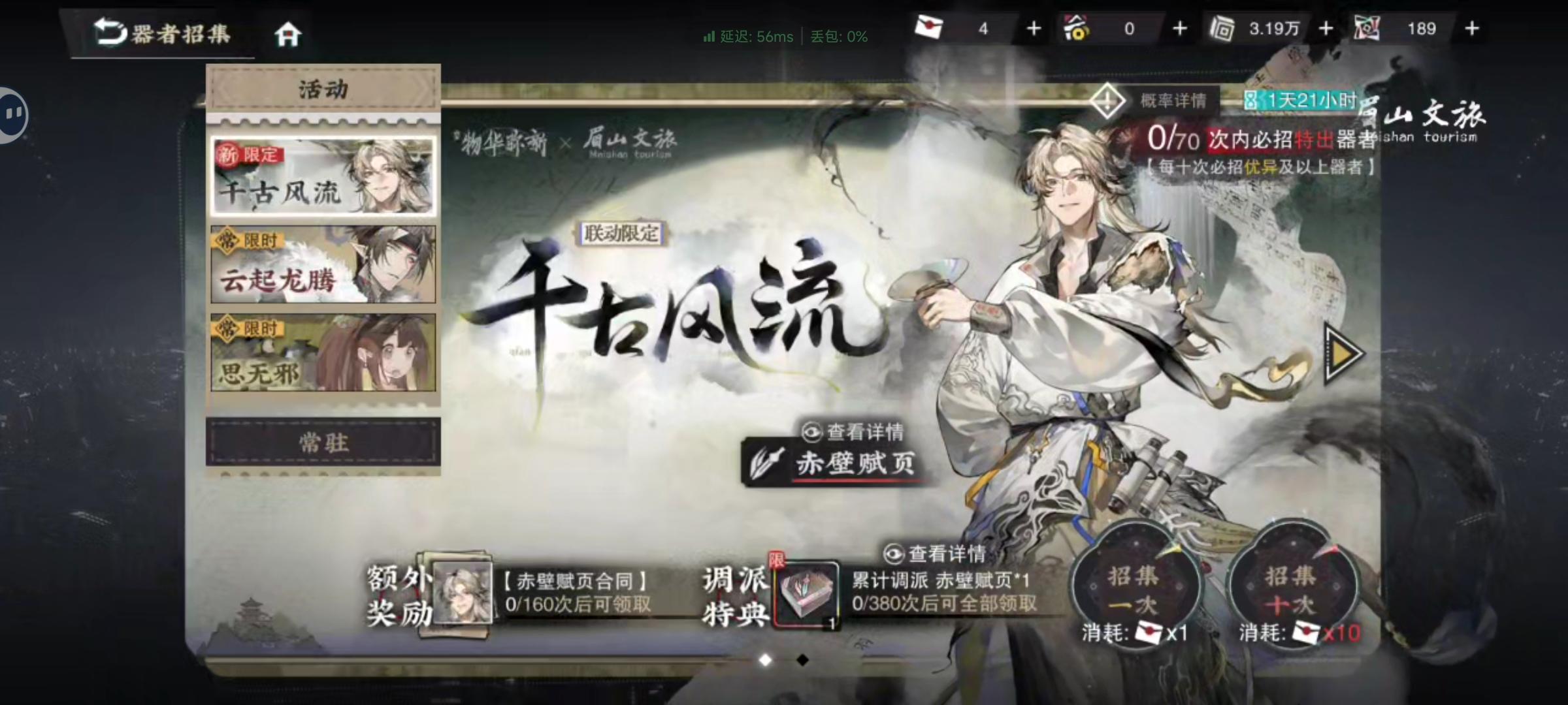 为赤壁赋页入坑的480抽 吃三井满致🤏😭我觉得对萌新来说福利蛮好的要不我哪来的这么多抽?后面我看卡池快结束了 不想成为五灵王就氪了一点 然后井到满致了我觉得我可以玩物化弥新(既然我这么倒霉了 就不要让其他人受到吃井之痛了)愿各位收藏家欧气满满