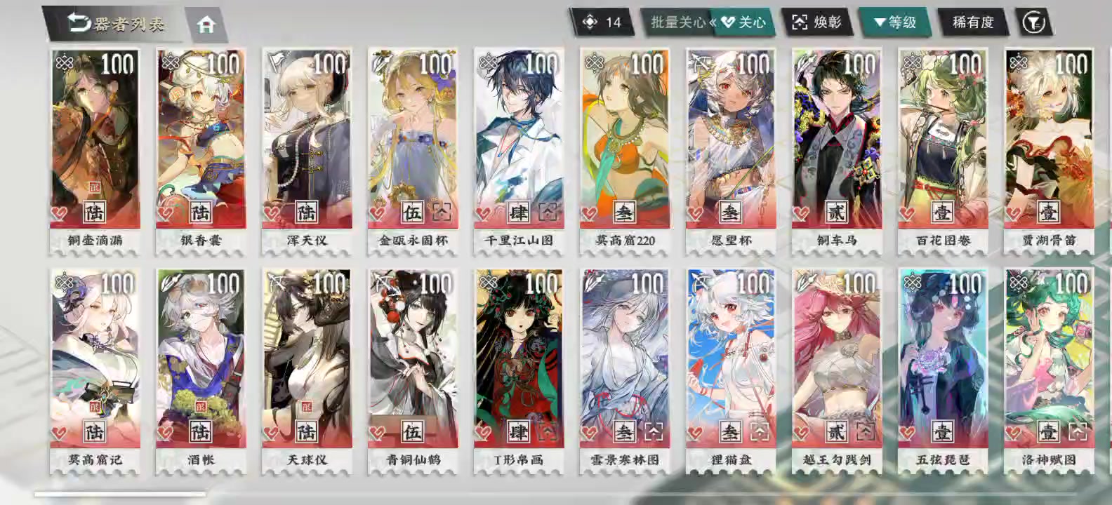 通用性不如流云,基本属于专武性质。新剑,需要暖机8层,基本只有明天的赤壁赋适配(来回使用职业技和绝技循环)。新弓,需要绝技后能再动的器者,基本只有天球和马蹄金,但爆炎持续1回合,马蹄金容易断buff,故只适配天球。新构术,一眼只适配t画。新炮,只有双子的孙子形态能吃满词条。新盾,被打5下才能满层,回合结束掉2层。