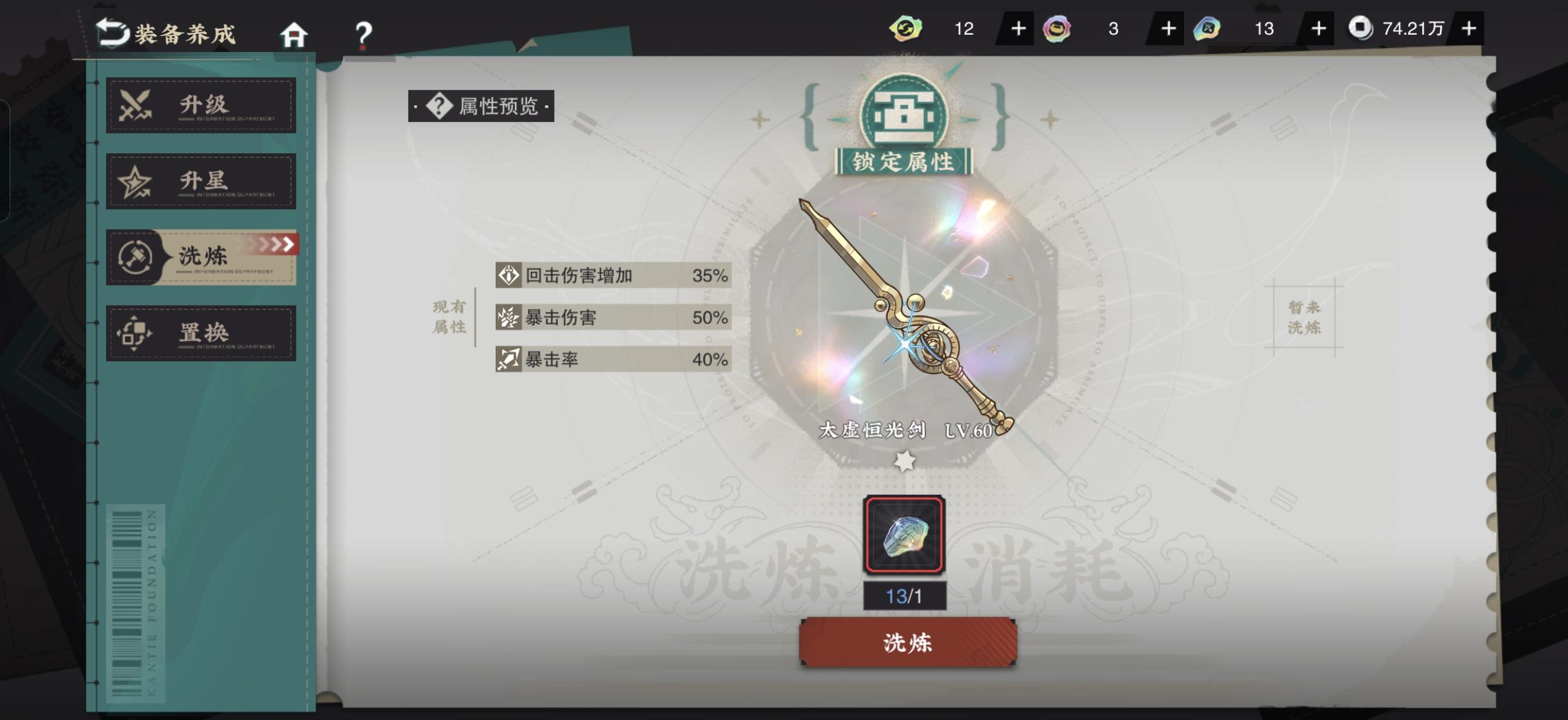 这个武器和洗练怎么搞啊?给赤壁赋页用