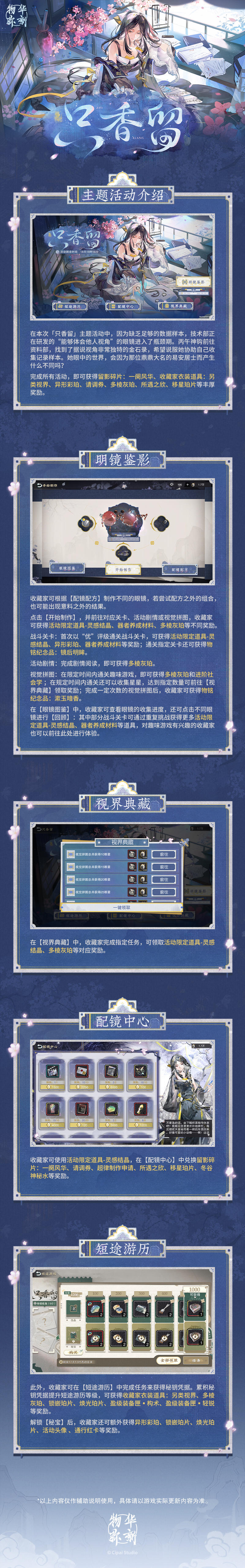 因为缺乏足够的数据样本,技术部正在研发的“能够体会他人视角”的眼镜进入了瓶颈期。丙午神钩前往资料部,找到了据说视角非常独特的金石录,希望说服她协助自己收集记录样本。她眼中的世界,会因为那位鼎鼎大名的易安居士而产生什么不同吗?◇开启时间◇1月22日 10:00 ~ 2月12日 09:59 ◇玩法奖励◇留影、收藏家衣装道具、异形彩珀、请调券、多棱灰珀、所遇之欣、移星珀片等奖励。 具体活动