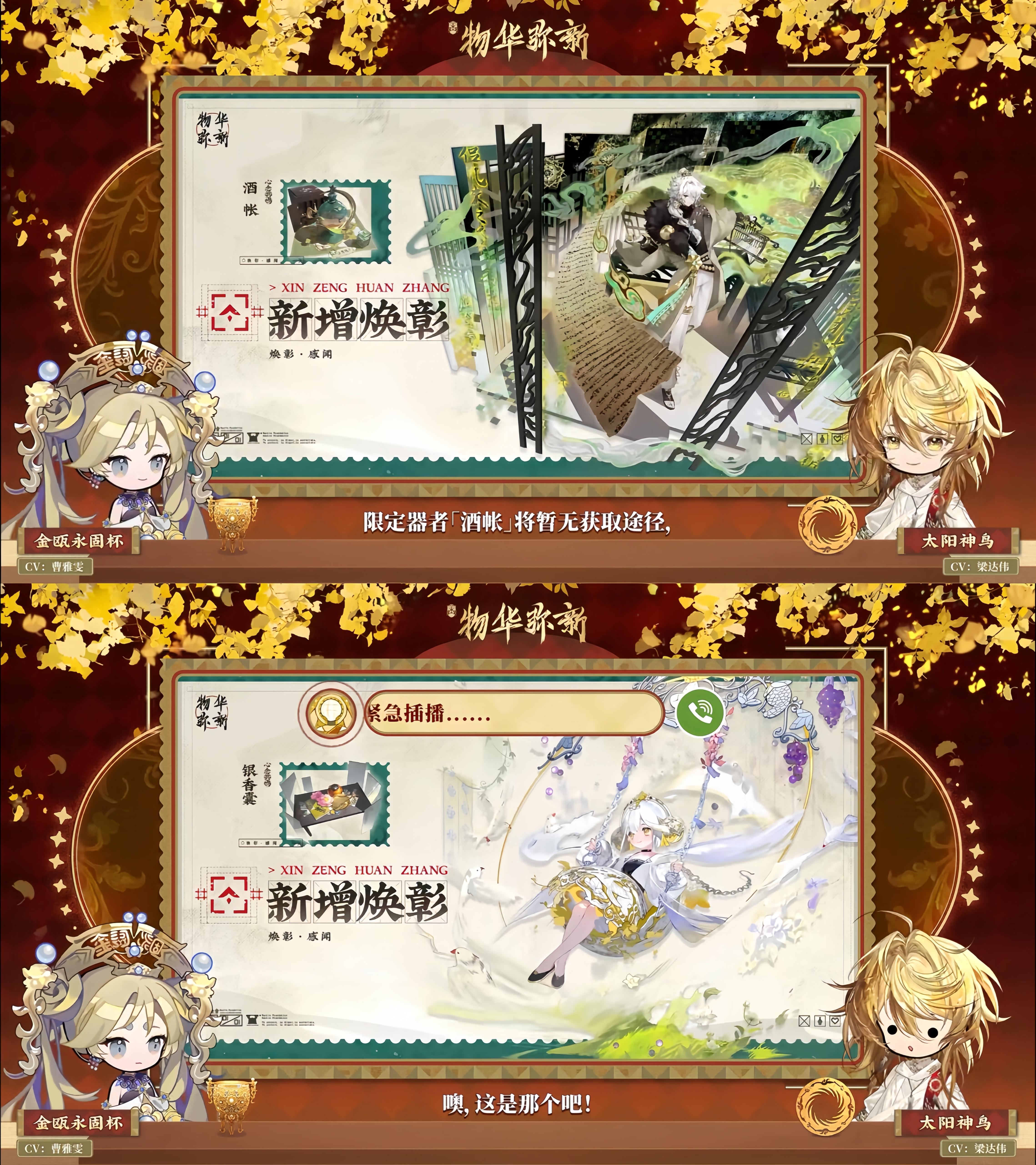岁聿云暮,一元复始。亲爱的收藏家们,新春快乐! 《物华弥新》「日升如恒」版本将于2月12日开启,全新限定器者「太阳神鸟」如约而至~ 本次前瞻中所展示的游戏画面与奖励均为开发中内容,请收藏家们以游戏内实装为准。 「太阳神鸟新年贺礼」将于2月12日23:59:59失效,请各位收藏家及时兑换~
