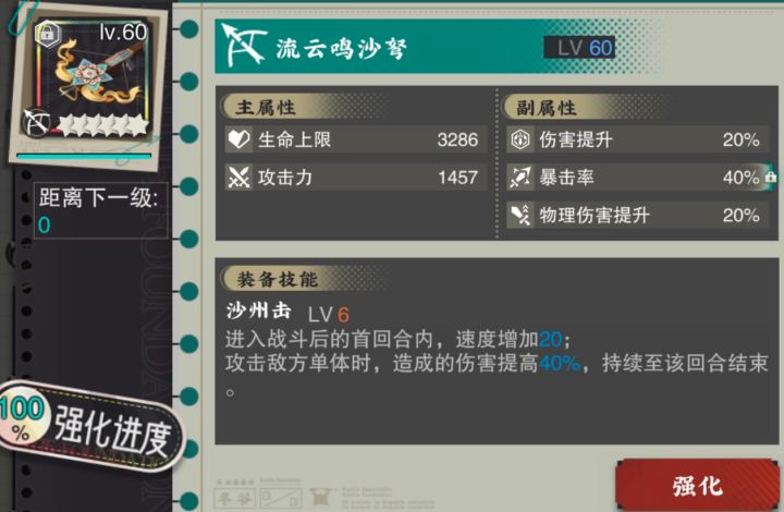 ①抽取建议:流失体系/追击体系抽本体,有条件可选择三致知。周年庆在即,2.8版本预计可攒100抽左右,建议大家至多抽空现有抽卡资源或者歪一只停手。②简评:输出辅助兼备,本身强度尚可,不排除后续版本被打压,投资需谨慎。③深造:破碎5500④武器:流云鸣沙弩(对单)/铜犴弩⑤词条:物理伤害提升,伤害提升,暴击率,暴击伤害,攻击力(%)⑥配队推荐:0致知时:愿望杯,青铜仙鹤,太阳神鸟,卷云金