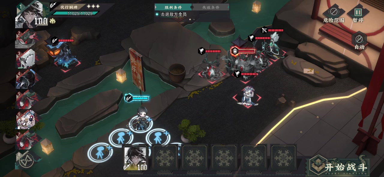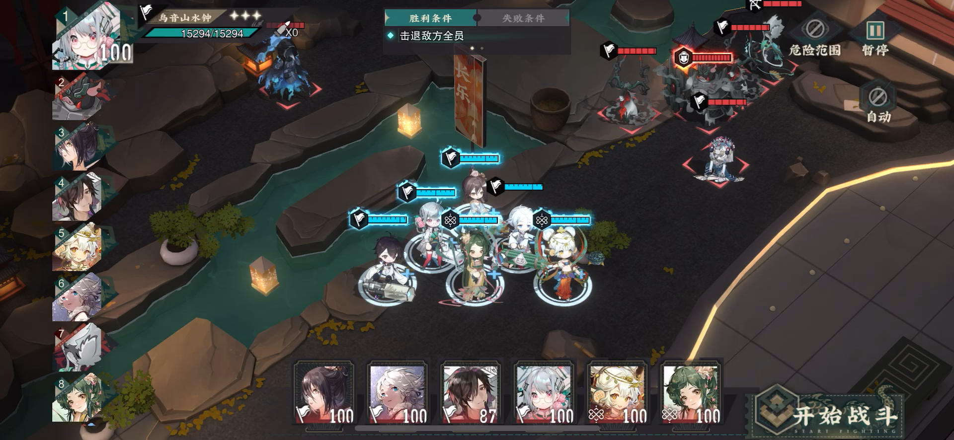 #物华弥新 目前东方91级,综合这次试练梅5应该是难度最大的,两个远击兔以及术士将难度拉高了不少,溪山在本关作用不大,故换入了大神龛试着解一下后排怪(大神龛伤害是真有些不够了,双加成叠满一大一a才能解决远击兔(45级竹弓)。