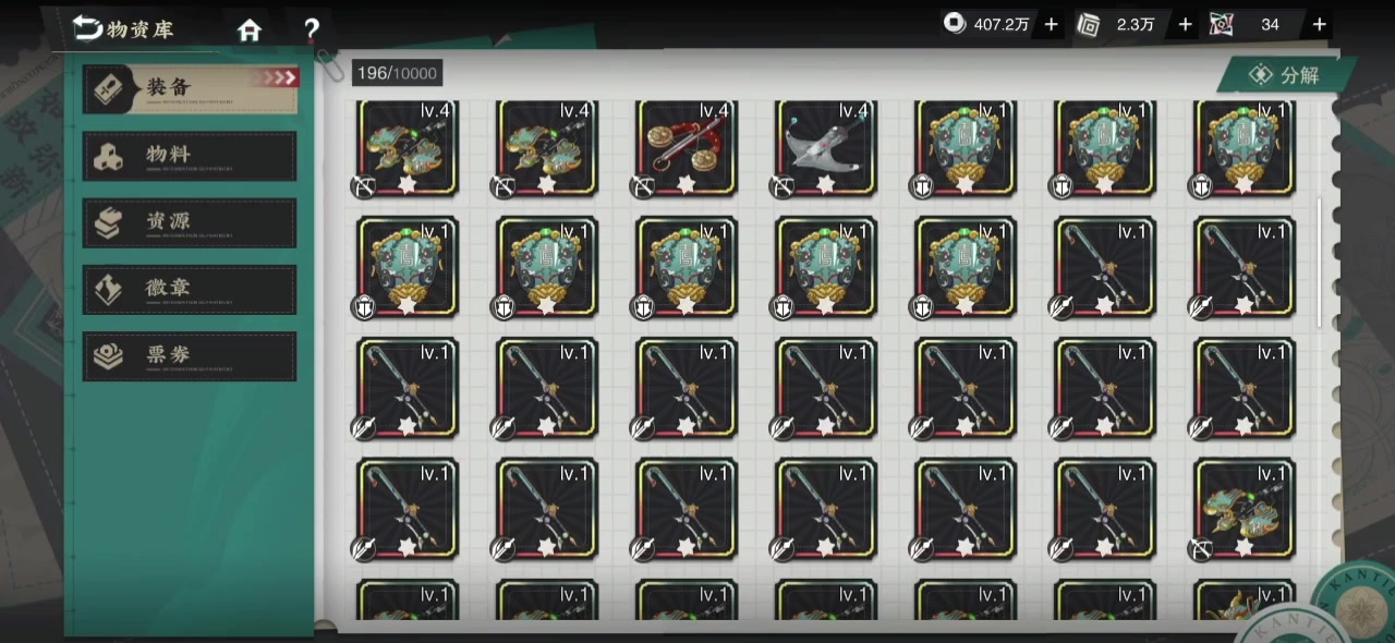 昨晚上头把存的水全拿去刷装备,大概2000体力,收获一堆垃圾,忘周知。