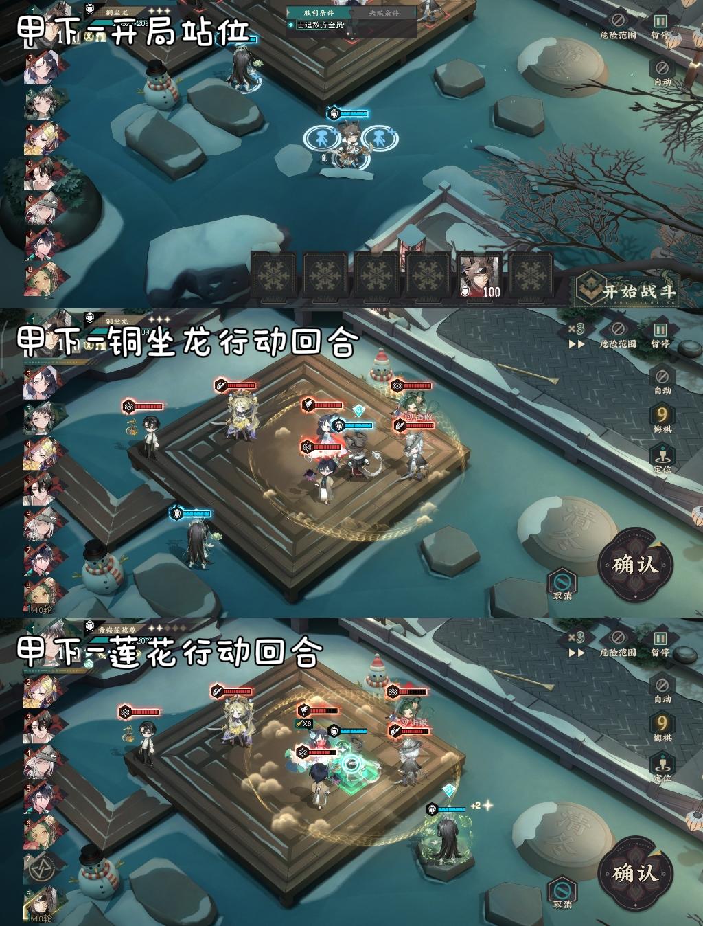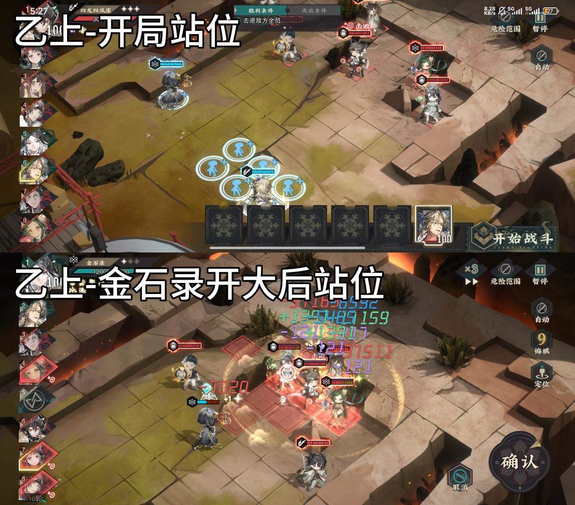 ⚠️无器者要求,全靠助战,需手操,喜欢自动的宝宝可以跳过啦🌸【乙上】【图1+图2】·器者:金石录(协作角色)+六致赤壁赋(借)·步骤:①开局调整站位,赤壁赋去6号位②金石录往最右下走→开大→普攻莲花③赤壁赋普攻四龙(miss没关系)→开大打死四龙→开职业技能→普攻铜坐龙(注意不要在铜坐龙回击范围内)→开大打铜坐龙④开始挂机🌸【乙中】【图3+图4】·器者:T形(协作角色)+六致天球
