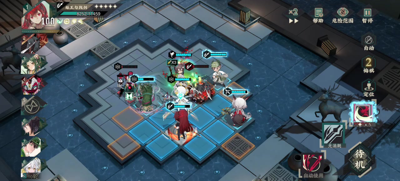 考虑不用利簋了,慢慢打呗,第三回合刚好能吃1命编钟buff😂爽是真滴爽呀~~一人清场