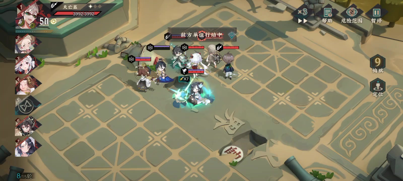 4-3,可以看到铜奔马下面有个红色的格子,本来是有个小怪的,我狸猫盘瞄准射击之后小怪本来应该残血的,但是直接消失了,然后接下来几个回合我的人物常击都可以选中这个格子但是没有伤害,(图中是我悔棋之后依然没变化),等到下一轮轮到这个单位行动的时候,就一直卡在该单位行动中。。。😂打了好久结果给我卡了,唉#游戏讨论