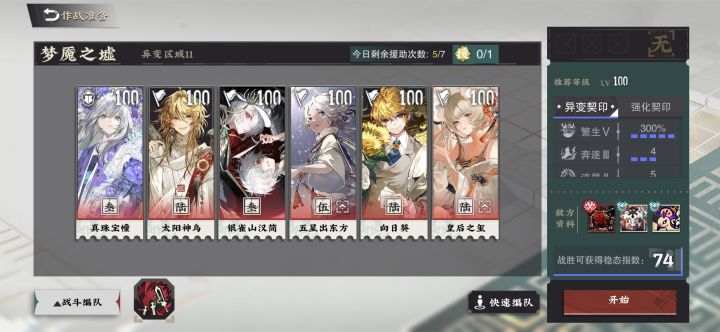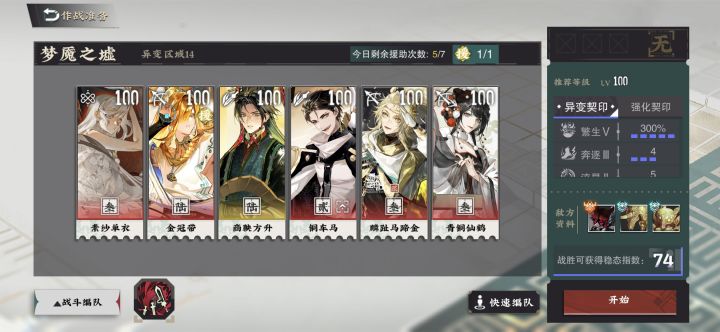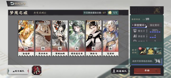 真的不要折磨自己,太难凹了。谁让我没有连击,没有召唤队。金冠带助战太权威了。1000——1(减伤+技能)注意走位,用莫记开拉,毕竟会踩死,尽量只留对面拿剑的轻锐1000——2(减伤+追击)注意开头十字围着、集火火婴,斜着站位1000——3(减伤+异常)慢慢凹吧5000——1(加速+追击)也是凹,经常会奇奇怪怪减员,减点暴击率,对面有反甲,秦工博建议换其他辅助5000——2(加