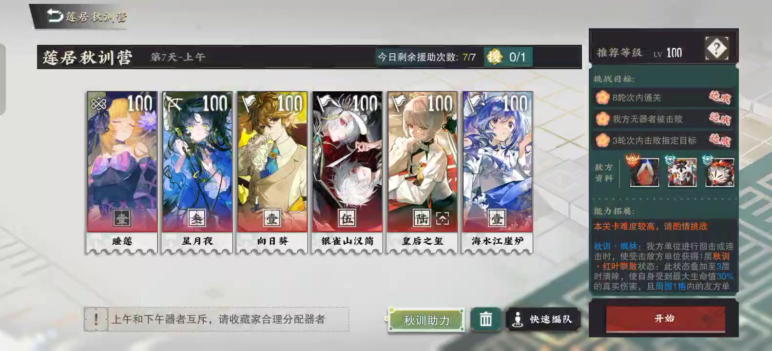 拐还是很强的,硬生生多两格攻击范围,7格警戒范围,直接化成地图大炮。狙击的攻击范围也只有7格。大范围带来的好处就是可以远点打击,配合睡莲的沉睡可以降低生存压力。虽然是玻璃大炮,但是近了身,摸不到人。一切都是白的。