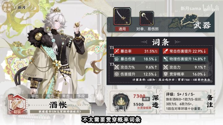 今天刷到酒帐焕彰后的新攻略点进去一看,发现并不是很推荐使用贯穿概率这个词条,但我之前甚至给贯穿概率这个词条上锁了,回忆了半天都想不起来当初为啥如此操作…现在不太清楚到底要不要调成双暴+常击,因为我给酒帐脱了武器,贯穿概率显示60,如果再算上流云20和沙洲明月10就是90,领域共研我这里只有4,也就是说最多94…我好像依稀记得有听说贯穿概率要堆