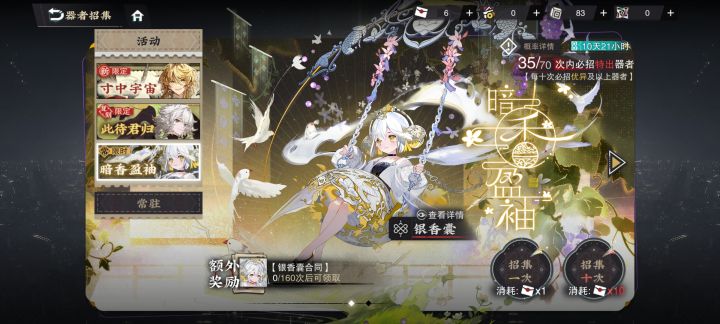 银币不够了推荐买游历手册嘛酒帐和银香囊推荐抽吗酒帐好帅,不过我抽太阳神鸟的时候还歪出了越王勾践剑(已培养)想问问银香囊好不好用目前在用诗文执壶(p4金色战略)#物华弥新