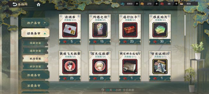 请问招集易市里红票可以换的角色多久更新一次啊?飞天和浑天仪在我刚回坑的时候就有了(青瓷莲花尊版本)买完这俩之后一直等着用红票换别的角色,结果一直不更新,还是必须要把徽章全都买完还会换人吖?还有我目前没有好用的奶,飞天和海水江崖炉哪个好用吖?