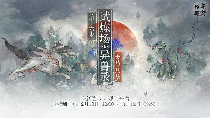 【活动时间】2月19日 10:00 ~ 3月12日 09:59【活动介绍】限时试炼场「异兽录」第十六期更新“天马”、“从从”关卡,活动开启后收藏家可直接从【演训】-【试炼场】进入。【活动奖励】通关限时试炼场可获得1500个多棱灰珀。※ 「异兽录」“天马”、“从从”关卡开启后,「异兽录」“羬羊”、“葱聋”关卡将关闭,常驻试炼【岁引干支】、【龙吟凤引(上)】、【龙吟凤引(下)】可在试炼场界