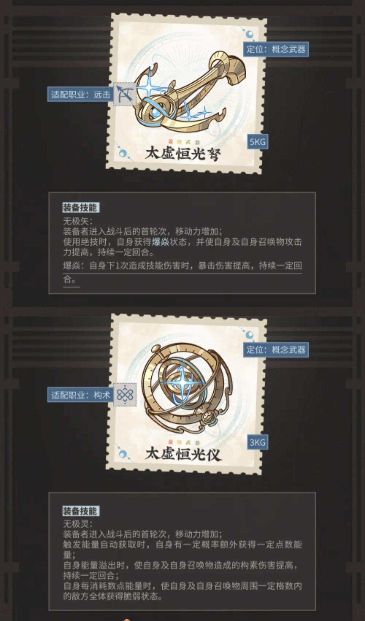 新盾应该是给龙的,按武器给的词条来看,龙焕章应该会加防御穿透和攻击力,盲猜是用绝技启动和四龙一样,武器词条应该还是要格挡新剑是给新角色的,轻锐形态伤害高,构术形态高伤害,防御穿透这个词条就是给构术形态用的,但是好像连击队的牛尊好像也能用新弓给天球仪的,召唤队还需要专门出武器补强?估计是为了防止新角色太过超标,所以给召唤队售后新构术武器是给T画的,虽然但是,我们的银香囊终于等到了加强
