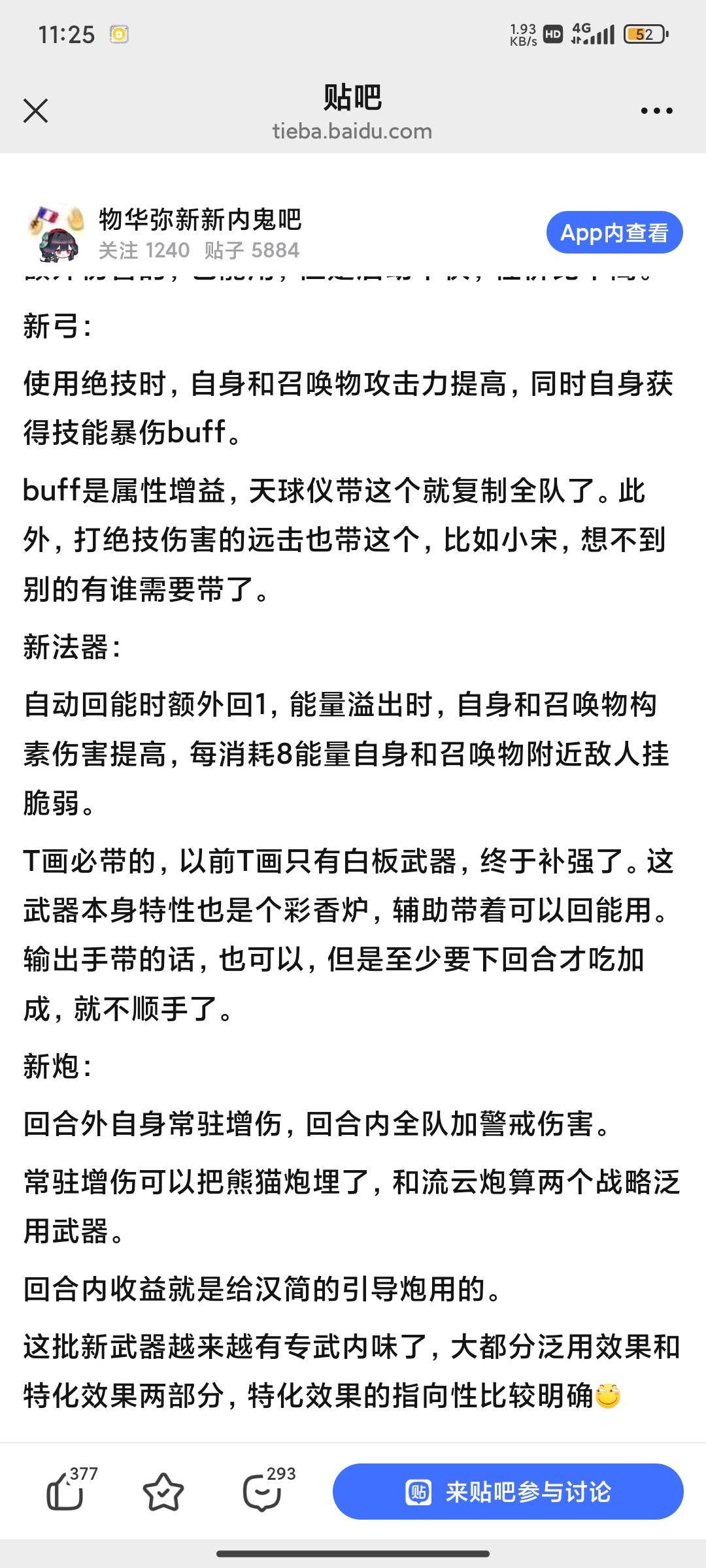 弩是天球仪专武加自身跟召唤物攻击力,自身获得buff,造成技能伤害时爆伤增加,这不就是给天球仪的,天球仪自身获得增益可以让全体召唤物也获得同样增增益。也能给T画的鸟加。构术武器是T画专武能量自动获取时概率获取一定点数能量,红武80%概率获得1点能量。这彩武100%获得2点没毛病吧?还加自身跟召唤物构术伤害,还能给周边怪加脆弱。这召唤队升天了啊,时隔多年,T画也终于有自己的专武了