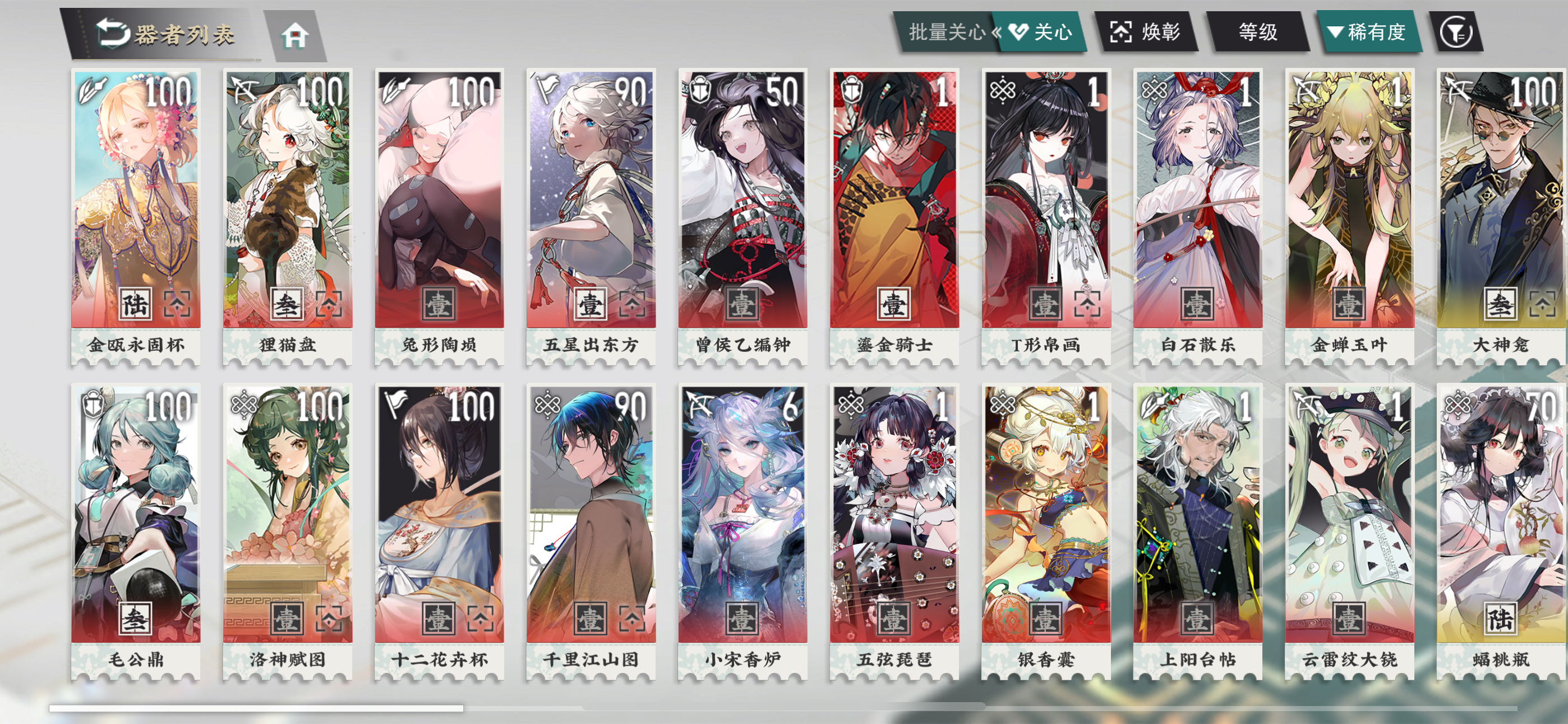 我将秉持着零知就能用的原则进行红卡推荐,并在后面进行相应的解释,主要是给新手们整体的一个养成方向。帖子制作不易,若有遗漏的地方,欢迎大家在评论区指正。新手向帖子,只考虑前期,不考虑幻彰!因为新玩家是没有资源幻彰的。A:构数构数输出型器者————————————1:王氏书翰卷(能用!当个蓄势哮剑拐挺不错的,就业面也比较广。但刚需队友解决速度问题)2:T型帛画(能用!刚需三知才能独挡一路。三