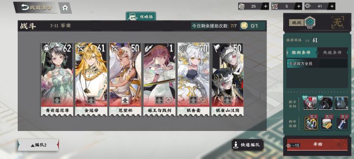 真的不要折磨自己,太难凹了。谁让我没有连击,没有召唤队。金冠带助战太权威了。1000——1(减伤+技能)注意走位,用莫记开拉,毕竟会踩死,尽量只留对面拿剑的轻锐1000——2(减伤+追击)注意开头十字围着、集火火婴,斜着站位1000——3(减伤+异常)慢慢凹吧5000——1(加速+追击)也是凹,经常会奇奇怪怪减员,减点暴击率,对面有反甲,秦工博建议换其他辅助5000——2(加