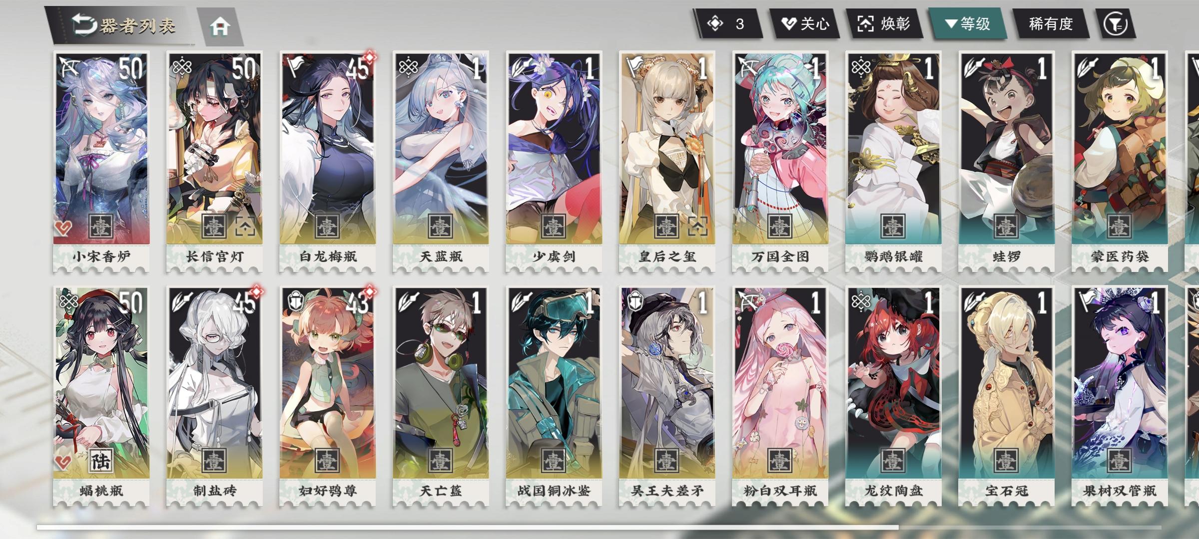 我将秉持着零知就能用的原则进行红卡推荐,并在后面进行相应的解释,主要是给新手们整体的一个养成方向。帖子制作不易,若有遗漏的地方,欢迎大家在评论区指正。新手向帖子,只考虑前期,不考虑幻彰!因为新玩家是没有资源幻彰的。A:构数构数输出型器者————————————1:王氏书翰卷(能用!当个蓄势哮剑拐挺不错的,就业面也比较广。但刚需队友解决速度问题)2:T型帛画(能用!刚需三知才能独挡一路。三