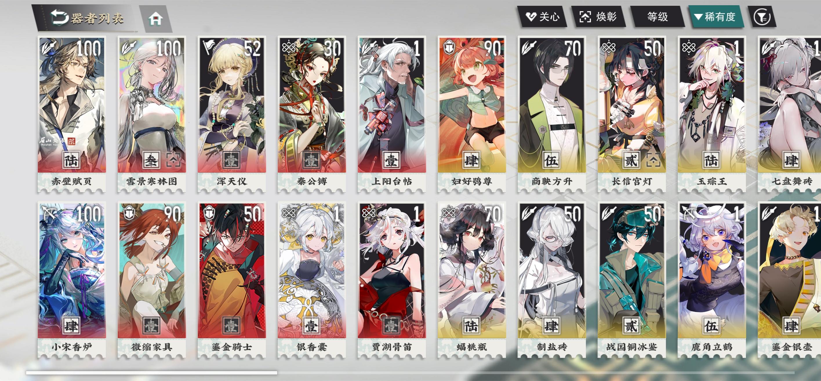现在常用就是小宋香炉,赤壁赋,雪景寒林,妇好鴞尊,微缩家具,剩下一个看情况,推图感觉速度太慢了,有没有能提速的金卡,或者有哪些值得练的金卡