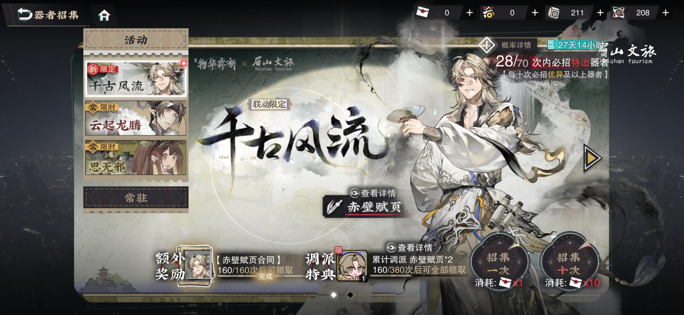 五十50抽出了一个,第二个是160抽必出的。中间出了一个双红,结果都是歪的,然后又出了一个红也是歪的。#游戏日常 #物华弥新 #物华弥新抽卡