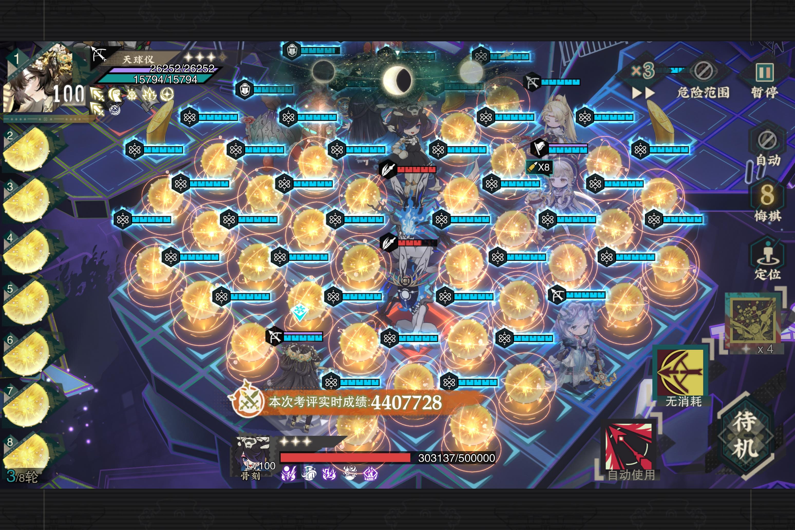 通用性不如流云,基本属于专武性质。新剑,需要暖机8层,基本只有明天的赤壁赋适配(来回使用职业技和绝技循环)。新弓,需要绝技后能再动的器者,基本只有天球和马蹄金,但爆炎持续1回合,马蹄金容易断buff,故只适配天球。新构术,一眼只适配t画。新炮,只有双子的孙子形态能吃满词条。新盾,被打5下才能满层,回合结束掉2层。