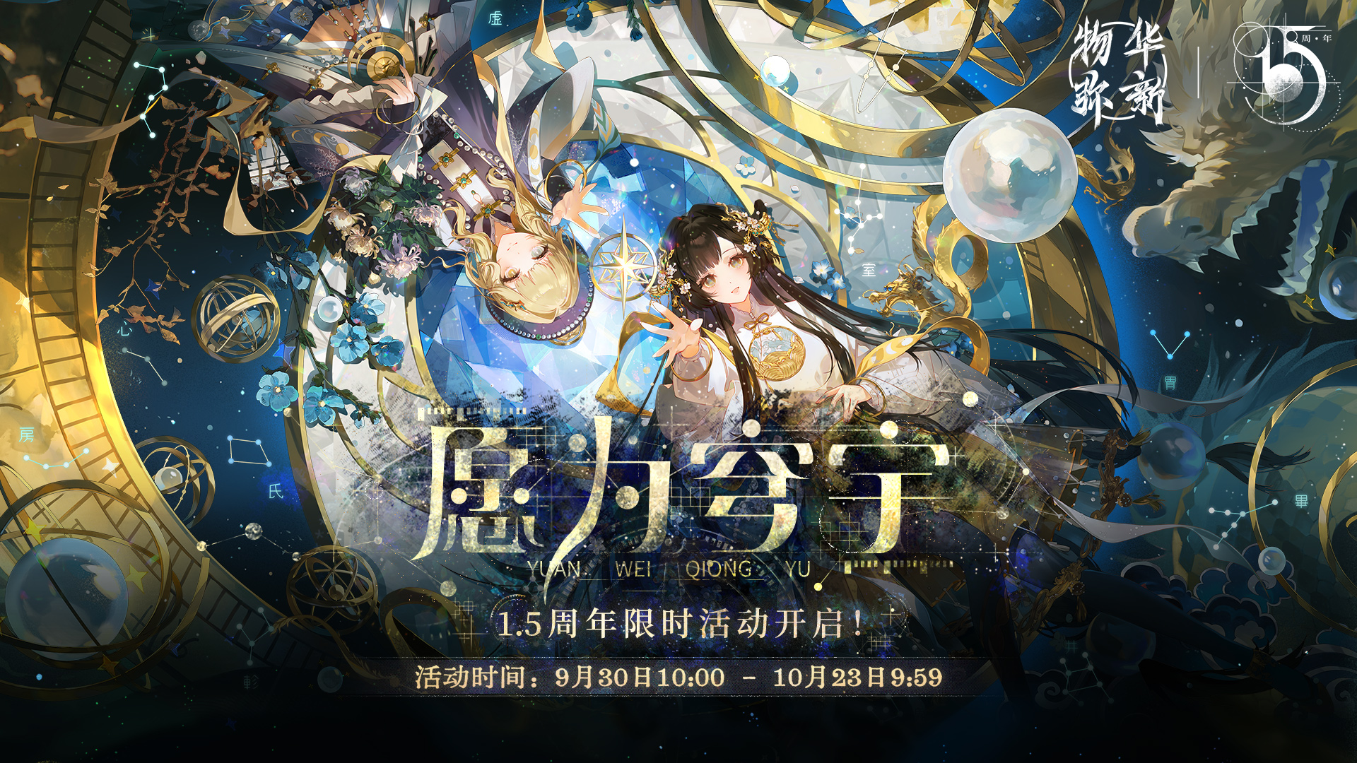 3、新增1.5周年系列庆典活动【星海絮语】,活动可获得特出器者【浑天仪】;