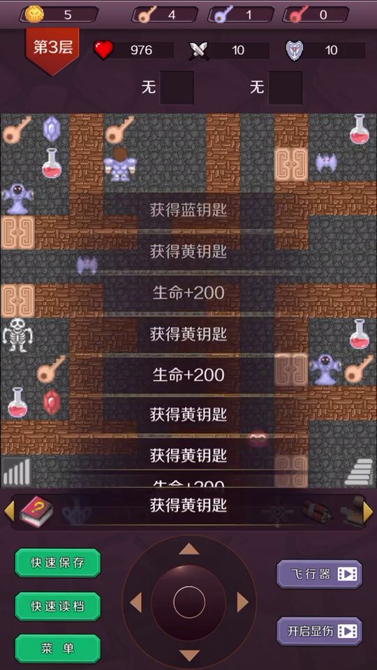 Q:第1层我就一把钥匙怎么过关?A:你是想上来就把整层全清吗?以后不要这样想了。Q:卡关没存档怎么办?A:你还以为自己能一命过不?Q:第3层怎么过?A:硬过。一个剧情而已。Q:一个初级法师打掉我600血这游戏能玩?A:攻击那么点你去磨血?不然你试试中医……Q:4层商店加什么比较好?买完翻倍了A:不要用4层商店。商店涨幅规律是二次函数Q:11层铁盾怎么取?一个法师就给我打残了还两