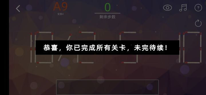 不过目前的游戏有一个小问题我想提一下,火柴的挪动当我没想好挪到哪里时放回了原处,结果就消耗了步数,导致过关失败。建议这里修改一下。