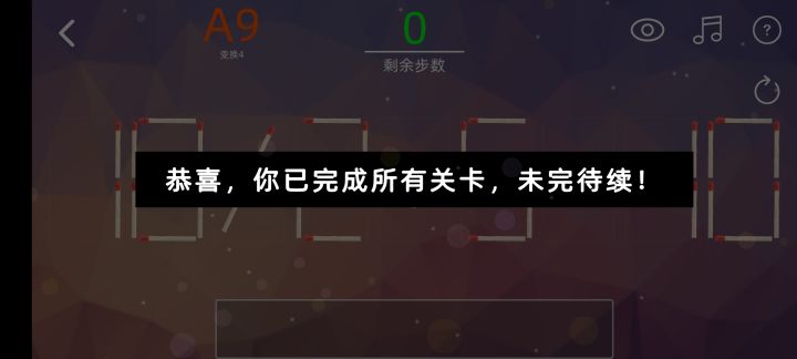 趣味火柴游戏介绍游戏具有非常简约的玩法挑战模式,你可以通过轻松的点击模式完成各种刺激的挑战和比拼;各种不同的运算方式和等式可以便捷操作,合理的分析运算解决歌中歌错误的数字满足需求;保持合理的移动火柴完成各种刺激的挑战,不断提升你的思维能力和想象力解决所有危机;超有趣的游戏参与方式众多关卡等待你的挑战,你可以灵活的去维持运算解决出现的挑战。趣味火柴游戏简介消耗步数来移动火柴,灵活的完成比