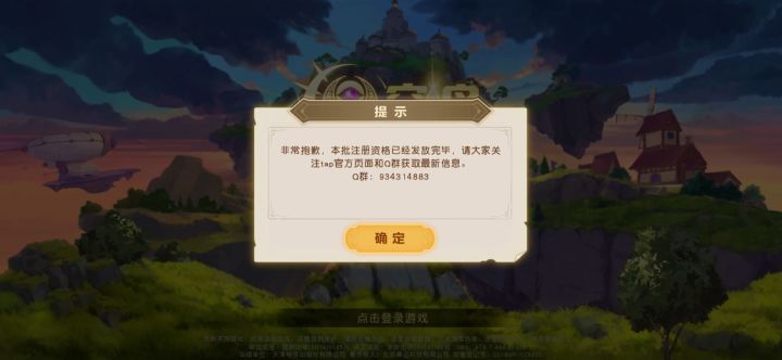 【请注意】下图中的提示界面是关闭注册时显示的固定文本,目前我们已热更修复该文字说明。6月5日10:00才开放注册,请大家稍安勿躁,明天开服时再进行注册,千万不要手快卸掉。。拜托了~