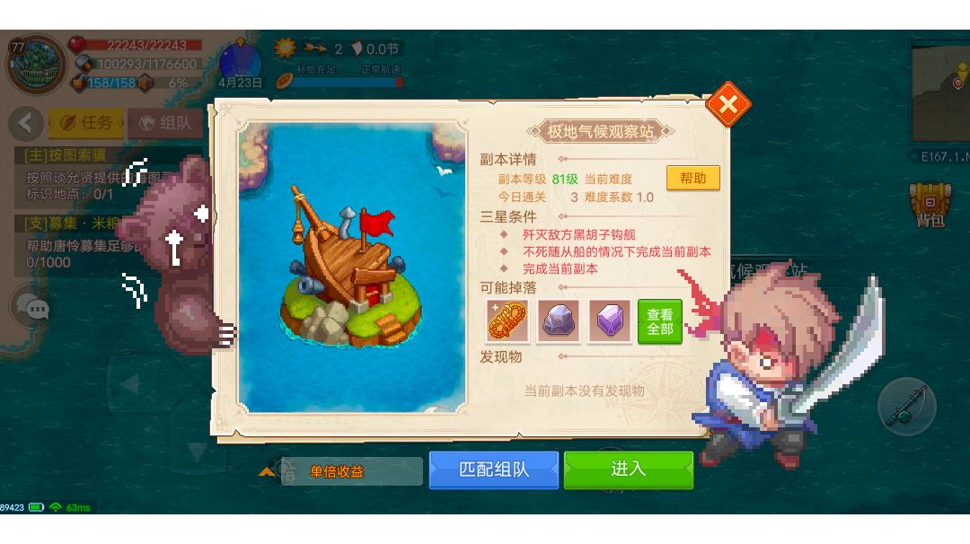 带的加农炮16紫,商店捡的垃圾,因为没有养战斗船队,所以只有安妮复仇女王号一只战斗船,别的也没带。熟练度13级,这里贴不了图,火力50000整。 副官带的加150射程那个,别的记不清,比较佛系。 整体难度比70级垮了个阶级,不过也还好。只是我火力不足。 说一下前几波儿怪都是正常怪,最后boss周围的小怪一炮一个,特别脆,很快就能清完,就剩个boss头头,呆瓜AI,很好打,甚至我还能一边换技能,一边跟他玩,那个穿透炮伤害高一些,建议打boss带那个。 没玩两次,有专门养战船的,应该能打个5次左右,0氪金玩家会很痛苦。