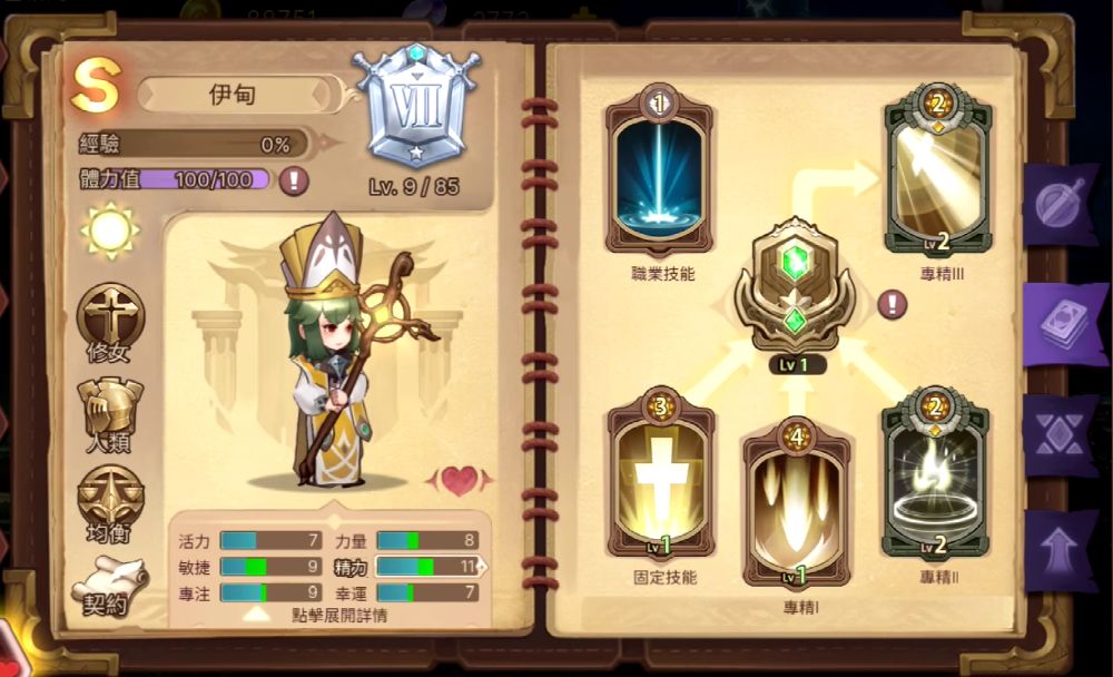 修女小姐姐,天使的化身,即使世界已經混沌不堪,她們依然還在默默守護著元素大陸。她看起來溫溫柔柔,但爆發起來卻有強大力量。接受來自修女小姐姐的祝福吧~~職業簡介職業初始技能(三選一)啟示禱告淨化光系人族修女光系精靈修女修女這個職業上手無難度,開局必選。作為團隊中的奶媽,前期能給團隊帶來不俗的治療量,輕鬆闖關打BOSS。中期遇到暗系的敵人,則可以利用光克暗屬性相克機制,對暗系怪物造