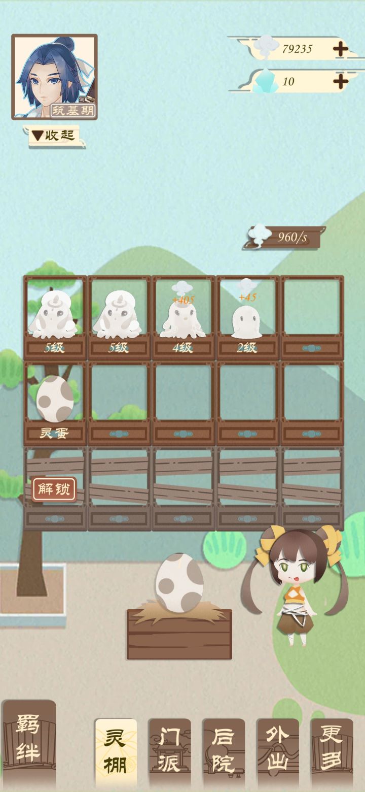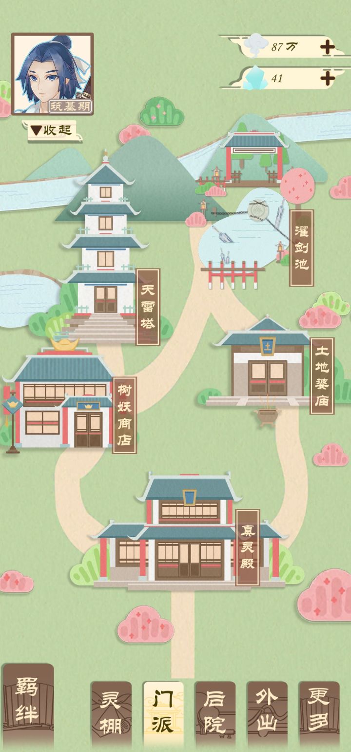 这个游戏基本没有新手教学 开个贴来讲一些经验先讲一下建筑的作用〔濯剑池〕可以放一把剑 然后升级一下剑 再给一丢丢灵力 前期没啥必要点〔土地婆庙〕点了之后一段时间可以产出一个玄晶!划重点 玄晶 玄晶是很重要的东西 后面着重讲〔树妖商店〕没啥好说的 顾名思义买东西〔天雷塔〕可以升级很多建筑包括门派等〔真灵殿〕孵化6级以上的真灵 划重点六级以上并且还需要 〔五色灵蛋〕和〔真灵精华〕虽