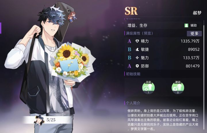超话看到有姐妹提,原来花都是他送的)背的口风琴上,还有主角的娃娃挂件。想跟小粉丝双向奔赴一下,结果发现人际交往系统里根本没有他不是,为啥呀,sr不配拥有是吧!!这么好的人设别浪费啊,与其在剧情里当夏为洲和Tiffang之中play的一环,还不如和小粉丝贴贴多可爱啊还是个傲娇)能不能把他加到剧情里,然后把夏老师的戏份减少啊啊啊啊受不了一点,真的不