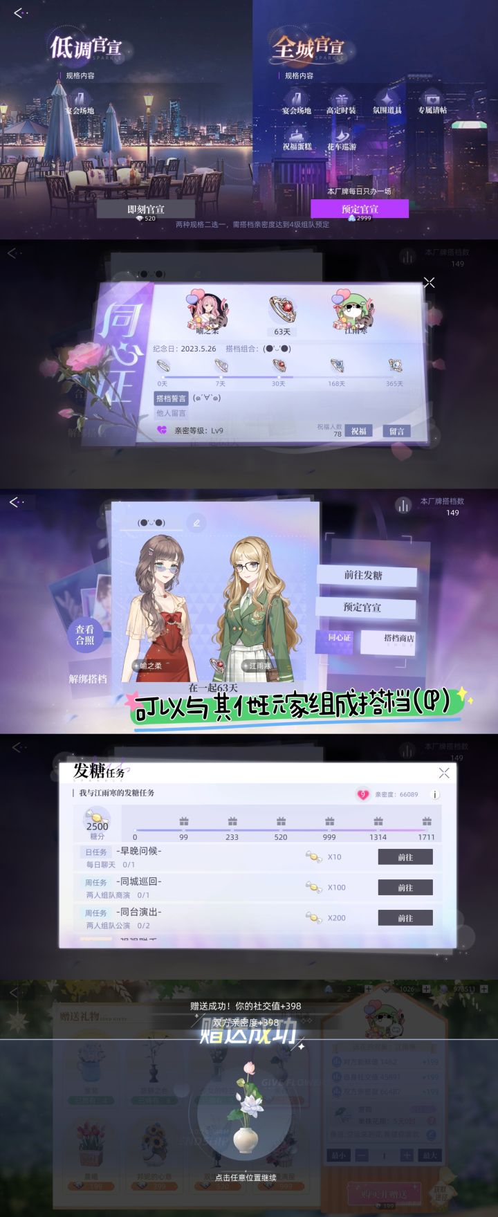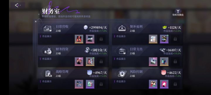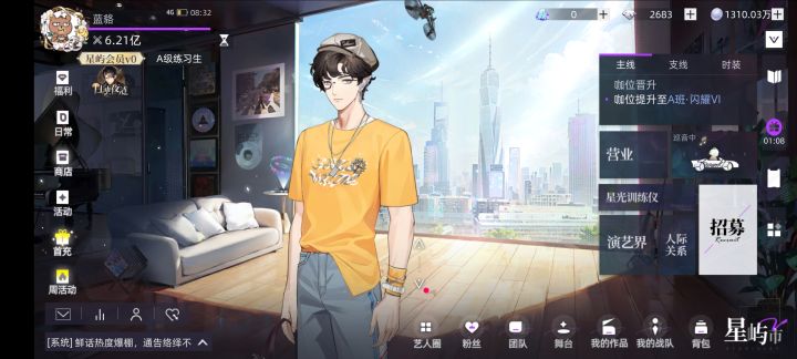 每天必做的事,除了每日任务外1.营业-详细的样子见图二,图三,图四每日曝光(每天直接使用完次数就可以,但是注意一下要在升级为下一段的名称之前使用完毕,比如新秀升级为F级)通告邀约(最好是使用最高级的通告,后续和10个低级的可以合成1个高级的,看个人习惯,商店里每日热卖橙色超值福袋有几率掉落高级的通告,也可以使用钻石购买)作品企划(这里是抽作品的地方,可以看看官方微博,定期会有周活动,达成目