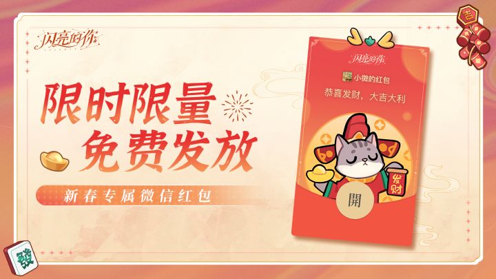 炎龙腾飞,壮志凌云!万众期待的红包封面怎么可能缺席~《闪亮的你》新春专属微信红包封面即将限量免费发放!在本条推文评论区送出你的新春祝福,斑喵会随机抽【5人】获得【闪宝微信红包封面兑换码】!✨发放时间:2月6日 12:00✨发放方式:※ 方式一:1、打开「微信」,搜索关注「闪亮的你手游」微信公众号,点击发消息进入消息发送界面。2、2月6日中午11:30,在微信公众号内发送关键词「闪闪