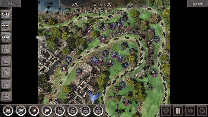 终于全部满血通关了,太耗时间了,其实只要塔安排得正确,几乎可以全程快进通关的,前期导弹(或激光)加闪电,后期氮气加大炮、龙卷风。