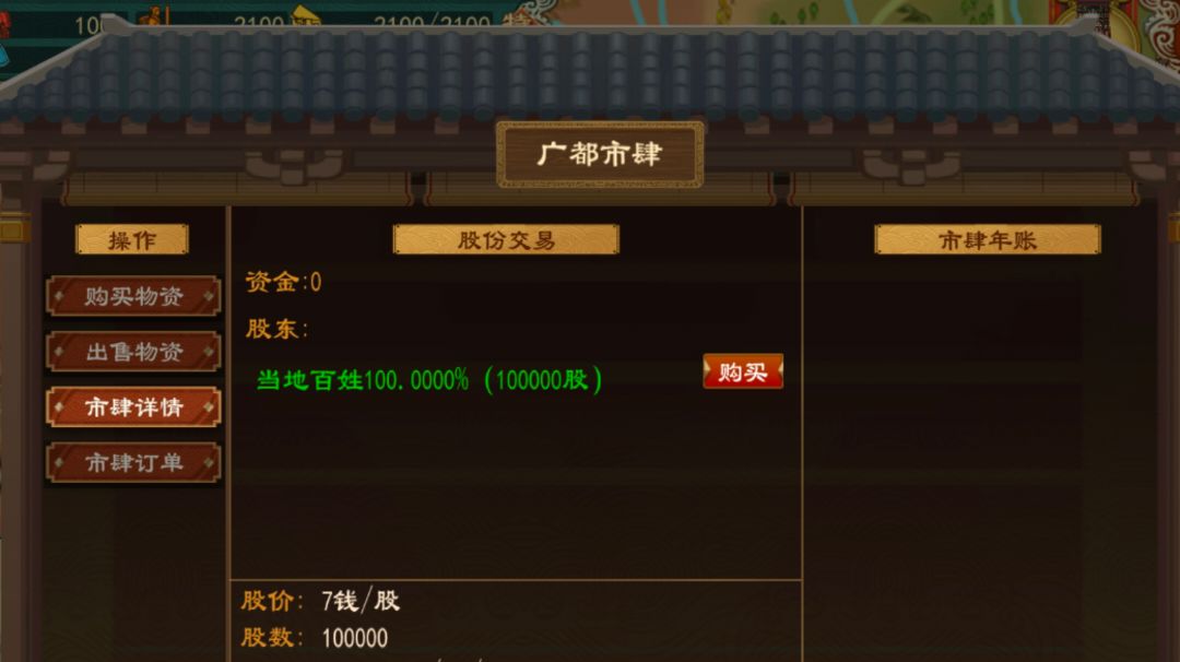 在人口充足,私粮充裕的城市会诞生市场,主要市场有大梁,徐州,淄博等 股东分红 首先向指定市场卖出大量粮食,获得第一桶金 市场资金耗尽之后,市场亏损,股价掉到1钱一股 低价买入 趁股价上涨可以卖出股票,套现资金 进口-制造-出口 开采条件:技术水平大于开采难度 例如:建造铜矿——炼铜场——铸币坊 需要注意的是,产业链上的产业需要放在一起才能生效。例如铜矿-冶铜坊-铸币坊#游戏安利#游戏讨论#攻略#游戏推荐
