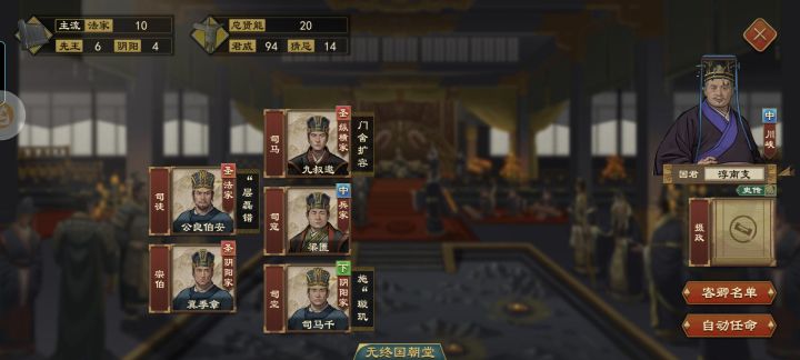 开局我们从圣人倒车到先民然后,我们重建神系,开始封神本局神系为:烛龙:我方随机宗亲成员智略+1;我方天命+1-10:随机消除我方1-3名宗亲、朝臣、门客的全部疾病状态:我方全军经验+3-10九凤:敌方随机城邑百姓生育-0.1%0.5%:我方稳定值+3-10:敌方随机,2位朝臣/地方官员死亡夸父:我方全军经验+3-10女娲肠:消除治下将发生的地震灾害:30%的概率,我方国君寿命+1:敌方