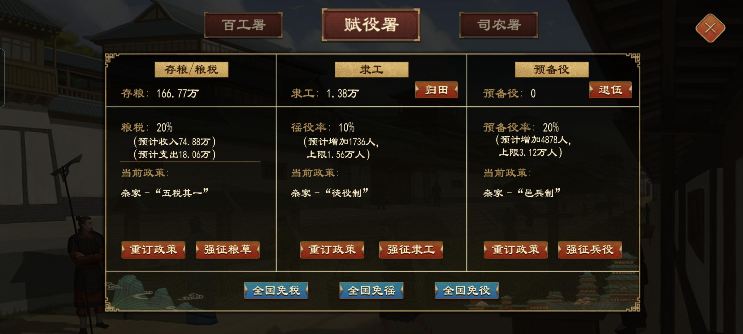 新手,难度选的游士。问一下正常吗他人口16.95拉出6.75万军队。我26.88万人口才3.33万军队就拉不出预备队了,上一年结束后才给了我88人预备队