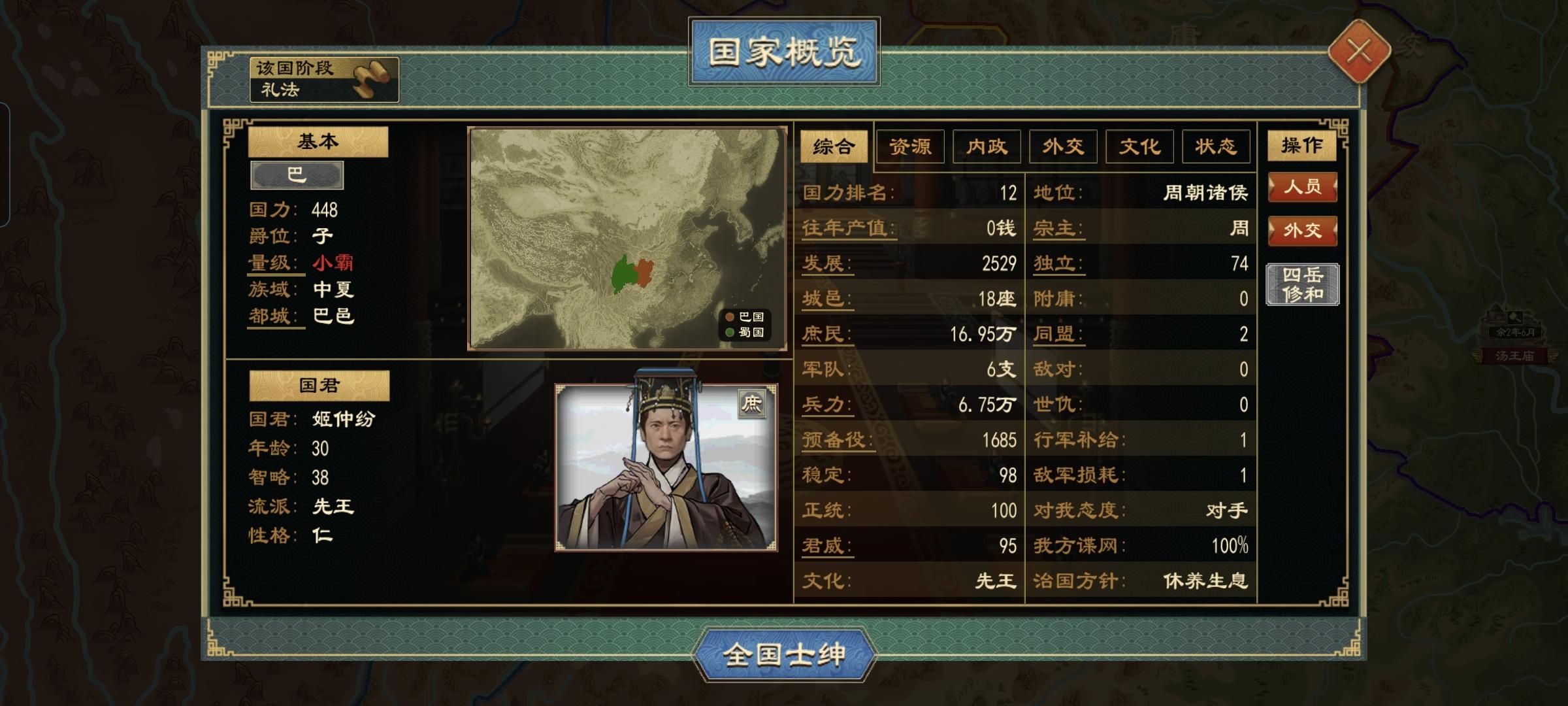 1.开始游戏2.选择剧本年代-上古等3.选择角落国家(非四面都有国家,打架起来,不能发育)4.发育篇:4.1 直接去驿站找游女,多找几个结婚,后面可以给兄弟封地(旁观者模式没用,AI自毁流放),【分封封地作用:分割战场,避免1打多,避免自己领土与多个国家接壤导致冲突打架,前期最重要的是发育。】4.2 招贤臣,集贤-招募令这里10连抽梭哈,有2-3个紫色就行了,前期顶用,后期发育起来绿色的