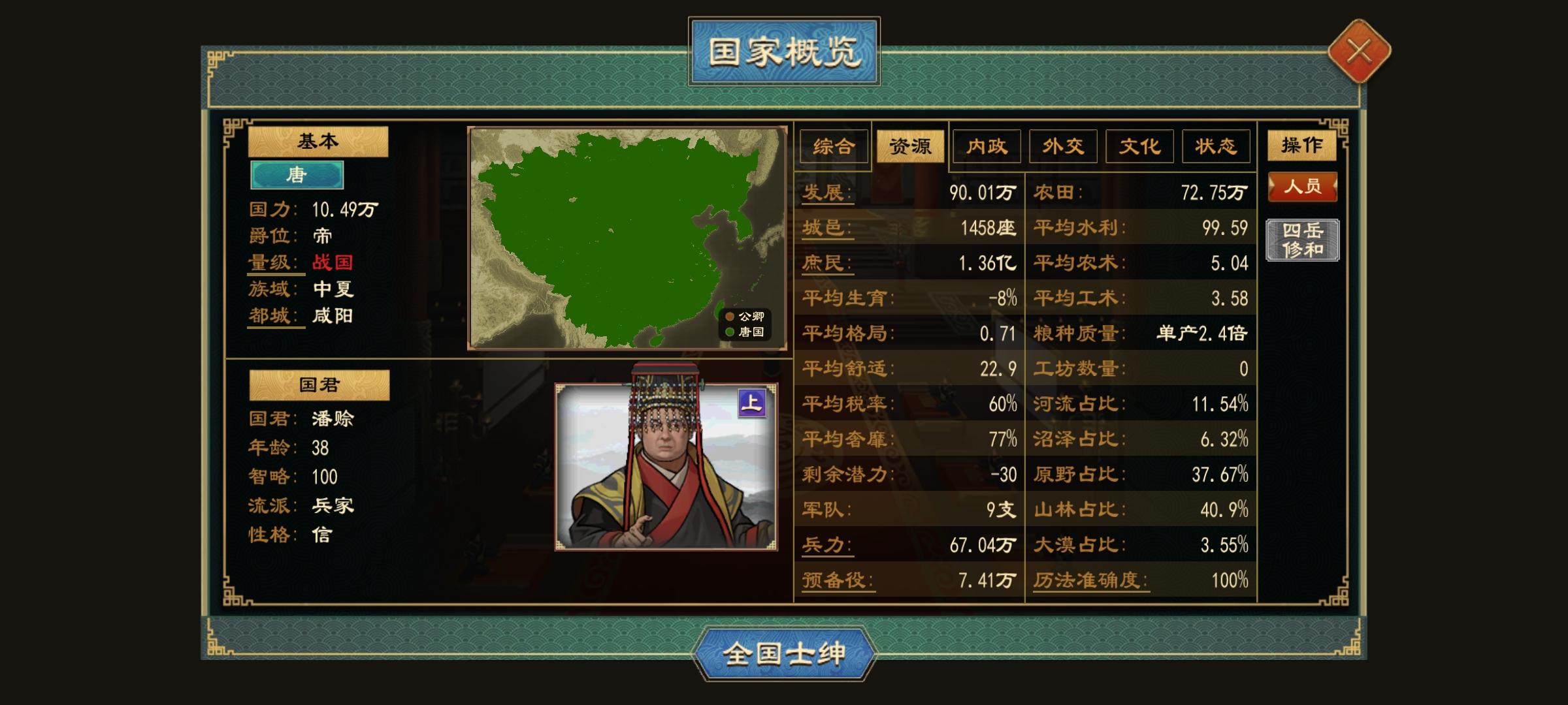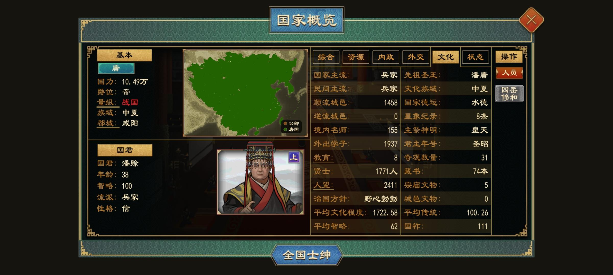 图上一共卿室36个,但之后又放了几个,主要是复国原因还有我不想用减复国政策文物。碎卿的征服效果很双标,每个卿室后期都能养出6军队,综合一下军队数量破百,并且碎卿的分军队培养欲望高,占全国一半城池并贡献了全国三分之二的军队,但是也有弱点,敌方弱的时候一窝蜂全来了,我甚至能看见稀有的38支军队停在一个城上,但敌方强的时候全缩家里,打个陆浑过两年了没一个出兵的,还得我打下对方都城了才稍微出几支。但最关键